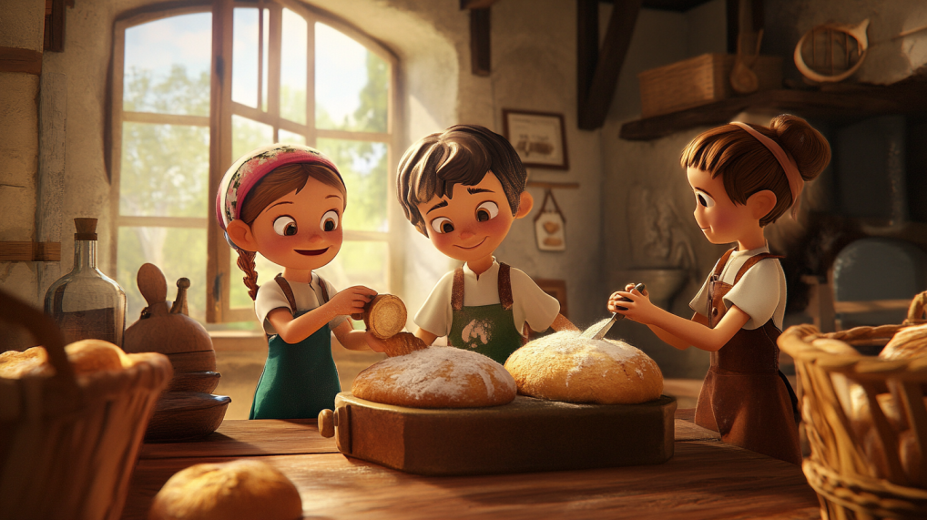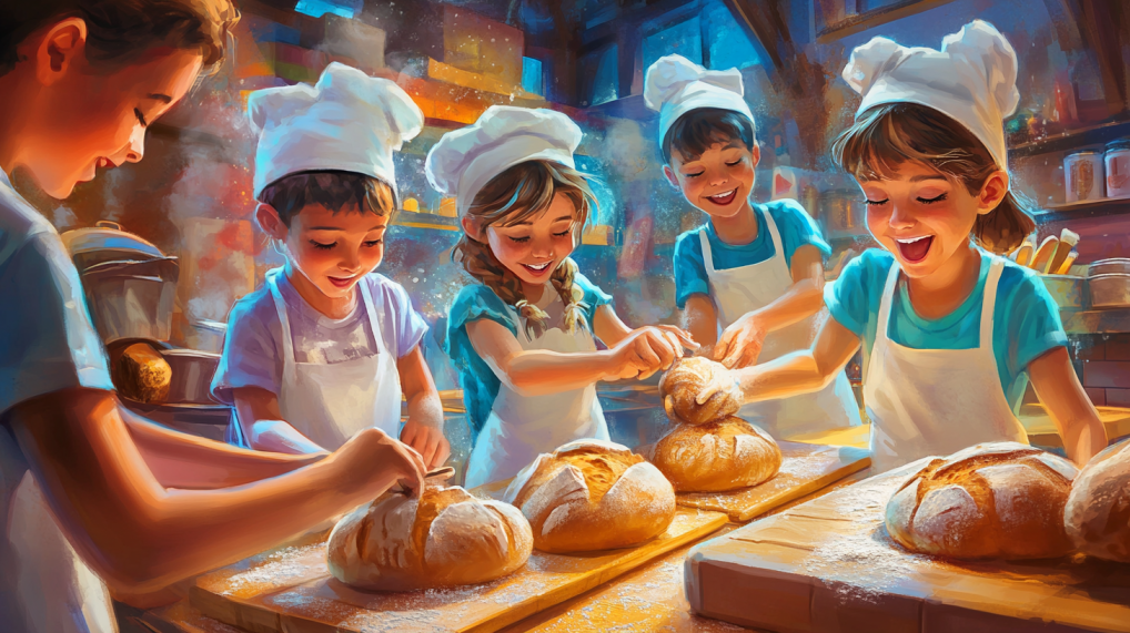 В конце экскурсии детям достают из печки свежий хлебушек, который все дружно съедают